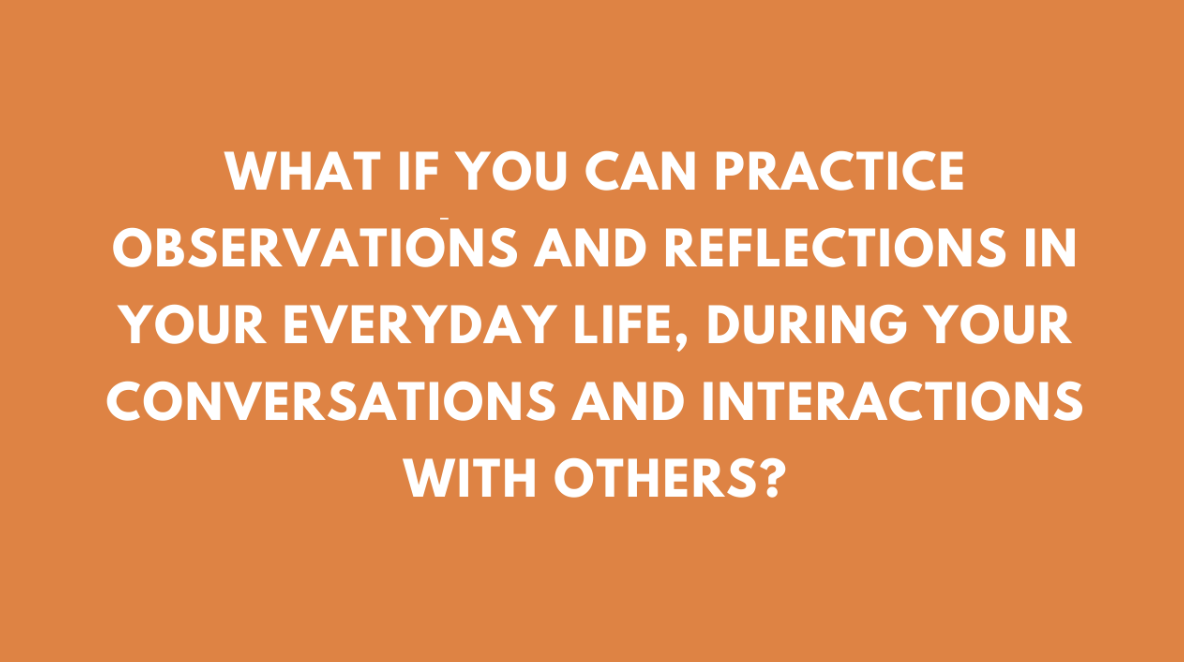 "What if you can practice observations and reflections in your everyday life, during your conversations and interactions with others? Would that allow you to reflect and learn, and be more present? Isn't it the idea to integrate what you want in your regular life?"