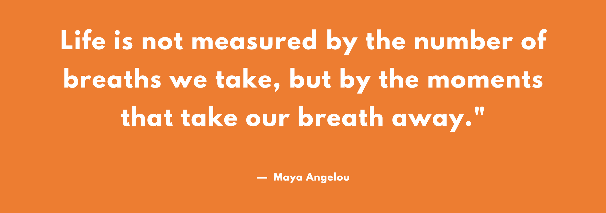 I’ve always loved Maya Angelou’s words: “Life is not measured by the number of breaths we take, but by the moments that take our breath away.”